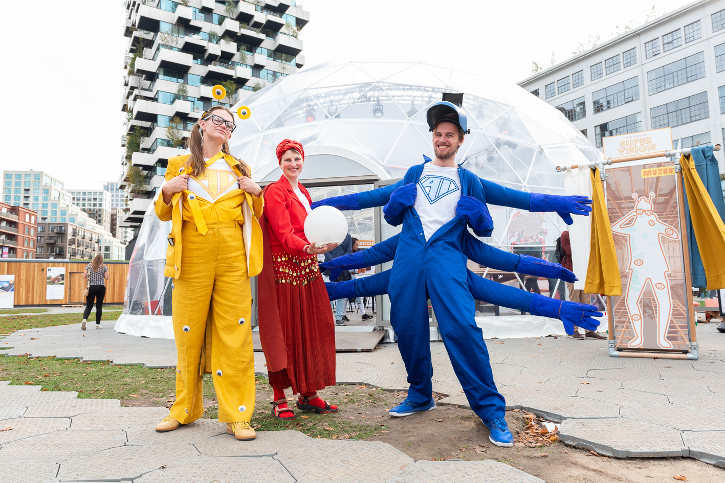 Bij Muzus besloten we om AI te transformeren naar personen. Wel te verstaan: drie superhelden. Volledig in het personage van deze helden gingen we tijdens de Dutch Design Week 2023 in gesprek met bezoekers over de mogelijkheden en gevaren van AI. Zo maakten we AI laagdrempelig, speels en begrijpbaar voor iedereen. Het is namelijk een stuk makkelijker te bedenken welke superkracht jij het liefst zou hebben, en hoe je die in je dagelijkse leven zou inzetten, dan welke rol AI in je leven zou kunnen spelen.